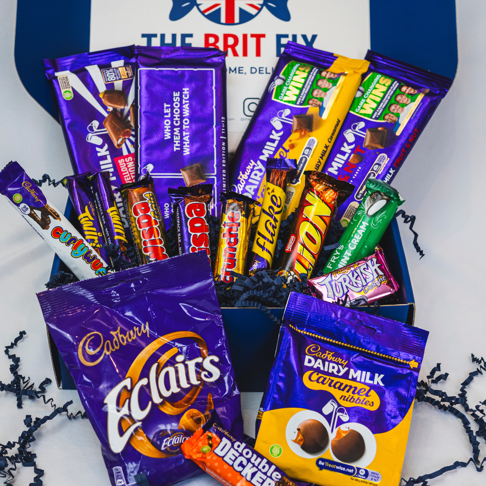 Cadbury Caramel Nibbles ×1, Dairy Milk Fruit & Nut (180g) ×1, Crunchie ×1, Curly Wurly ×1, Double Decker ×1, Flake ×1, Fry’s Peppermint ×1, Lion Bar ×1, Marvellous Creations Bar ×1, Turkish Delight ×1, Twirl ×1, Wispa ×1, Wispa Gold ×1, Dairy Milk Caramel (180g) ×1, Dairy Milk Bar (180g) ×1